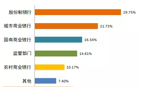 图释:本期监测到的银行业网络舆情中,股份制银行的舆情信息数最多,共33143条,占舆情总量的29.75%。其中,“广发银行一支行长受贿20万 帮老赖获3600万贷款额度”、“商业银行掀千亿级‘补血’潮”等新闻引起了较高关注;其次是城市商业银行,共24208条,占舆情总量的21.73%,“徽商银行亳州多次发生运营中断事件”、“兰州银行身陷皇台酒业逾期债 22亿不良或绊住上市脚步”等方面的消息备受关注;国有商业银行的舆情信息总数为18204条,占舆情总量的16.34%,其中“某银行员工贪污银监局工资,154次作案非法获利300多万!”、“河北多家银行取消部分收费 储户享受新实惠” 等方面的消息关注较高;央行、银监会等监管部门的舆情信息总数为16276条,占舆情总量的14.61%,主要是“《商业银行新设债转股实施机构管理办法(试行)》征求意见”的发布,以及针对银行违规行为的监管及处罚等;农村商业银行的舆情信息总数为11330条,占舆情总量的10.17%;其他如政策性银行、外资银行、私人银行等相关舆情信息占比为7.40%。